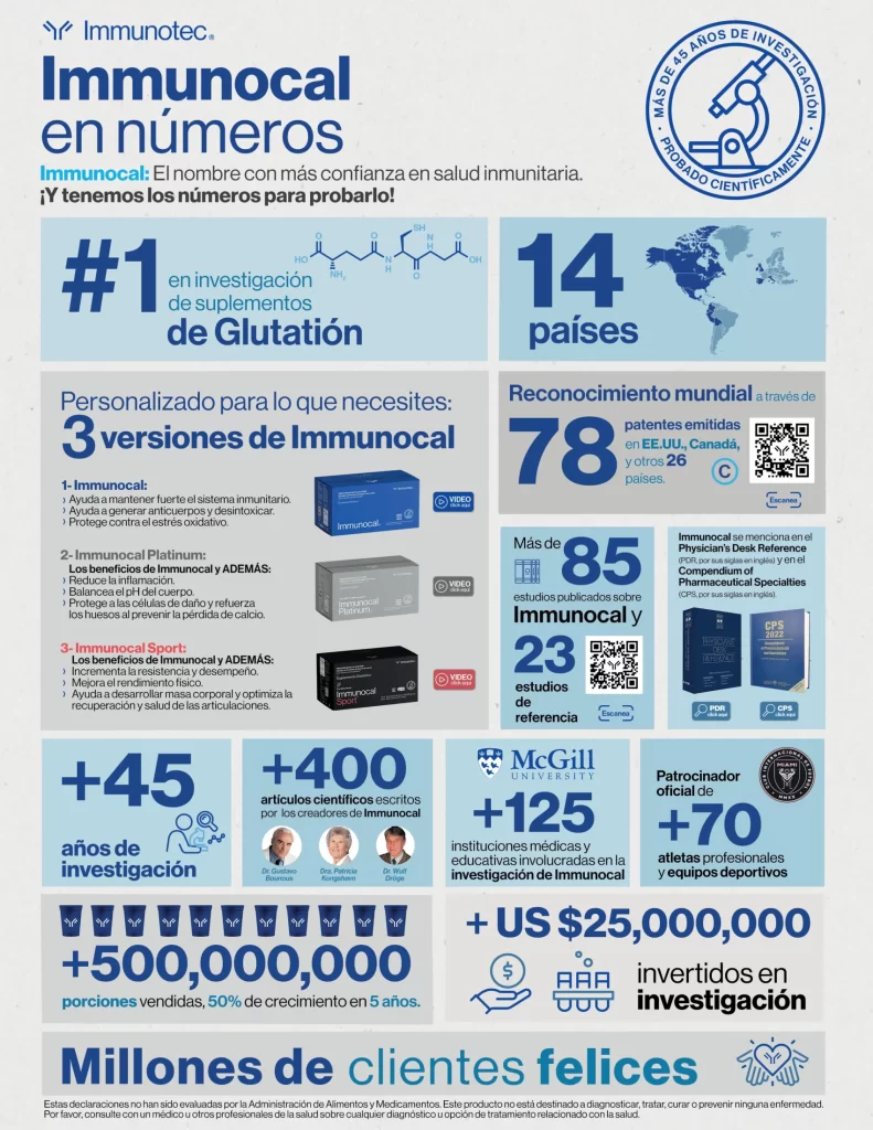 Porque después de exhaustivas y rigurosas investigaciones, hemos llegado a la conclusión que Immunocal es un nutraceútico patentado, con un sólido respaldo científico, único en su género y que realmente optimiza el funcionamiento de nuestro sistema inmunológico con grandes beneficios a nuestra salud y calidad de vida. Son innumerables los testimonios de medicina basada en evidencia que apoyan esta aseveración.